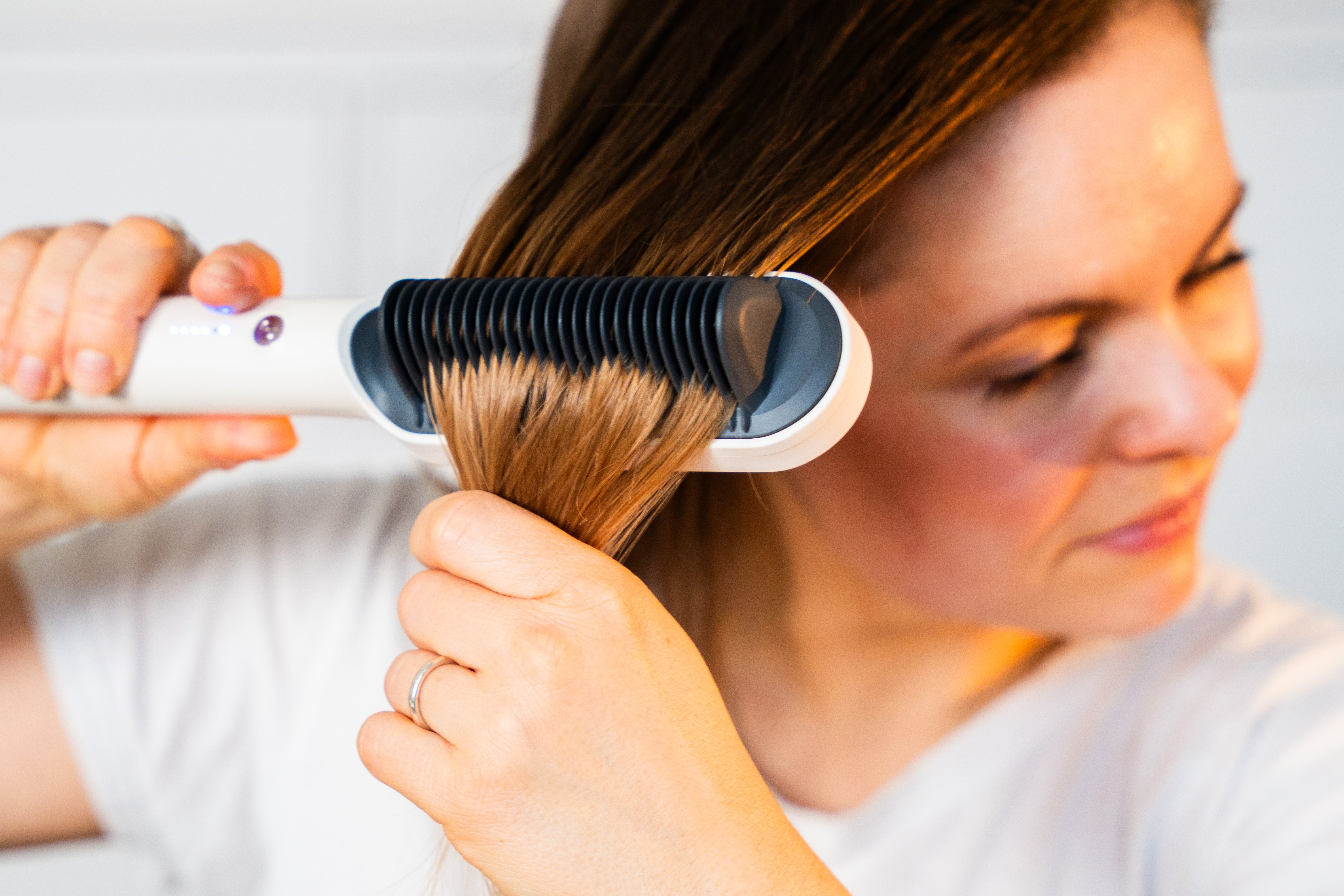 Derfor har vores 2-i-1 Elektriske Hårbørste justerbare temperaturer, der passer til alt fra fint til tykt hår.