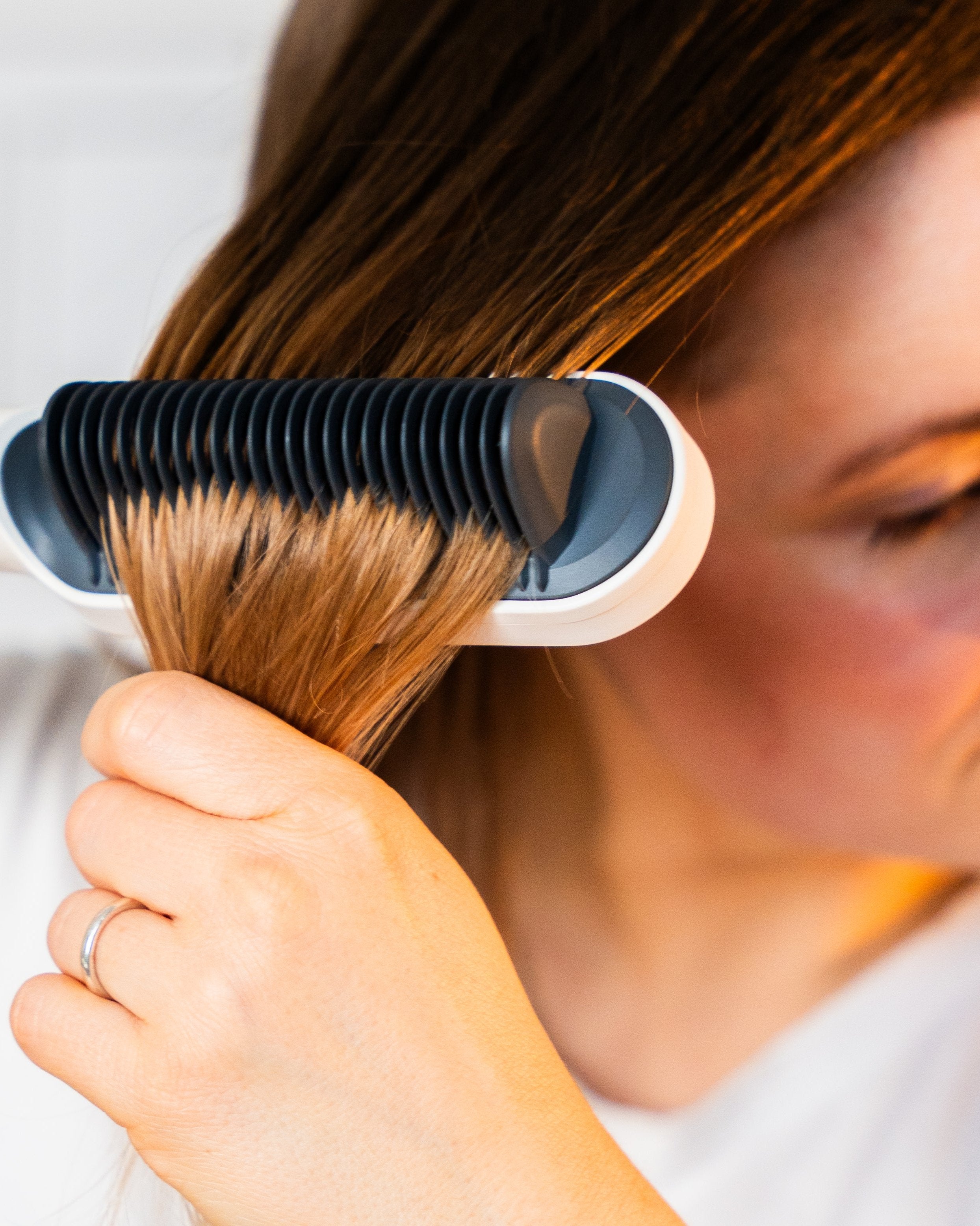 NordicSleek™ er hurtigere og nemmere end et almindeligt glattejern – bare børst igennem, og du får glat hår på et øjeblik, uden at skulle bruge tid på at klemme håret mellem plader.